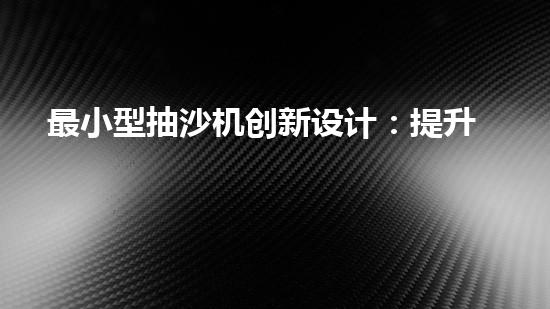 最小型抽沙機創新設計:提升效率的抽沙設備如何改變產業格局?